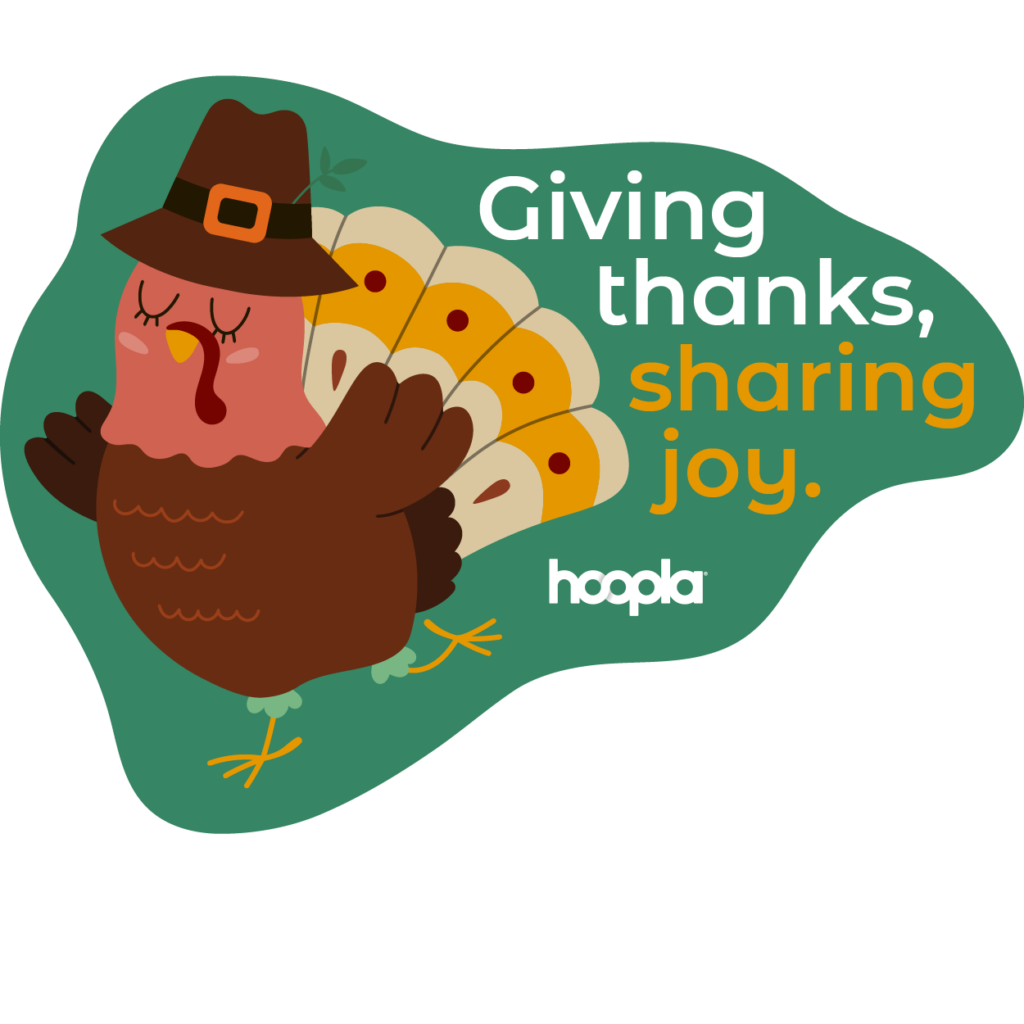 With Hoopla, you don’t need to get off your couch to get your next favorite book! Titles are ready instantly. While the turkey’s cooking, while helpers are cleaning up, even during a drive over the river and through the woods, Hoopla has yummy books for a memorable Thanksgiving.