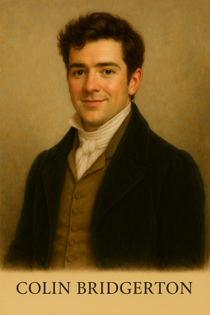 Colin Bridgerton:โฏThe charming third brother who travels often and takes years to realize his best friend, Penelope, is his perfect match. (Book 4)