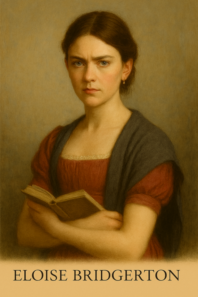 Eloise Bridgerton:โฏAn intellectual, outspoken woman who prefers her own mind to societyโs rules, eventually running away to marry a man she corresponded with. (Book 5)