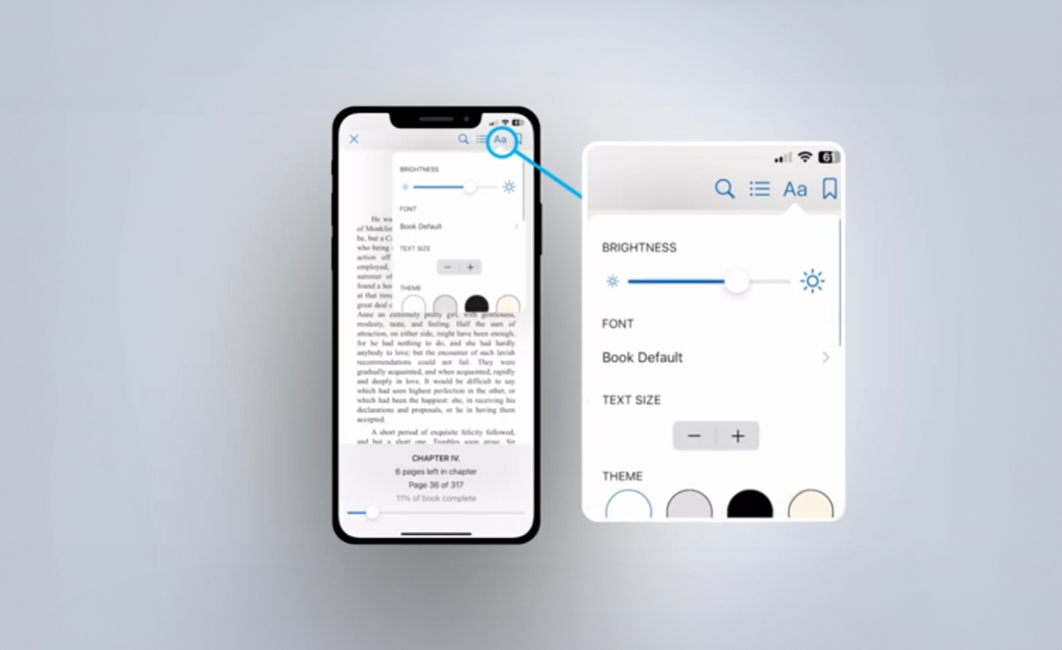 For eBooks, Hoopla provides several display options to customize your reading experience. You can adjust brightness, text size, and font styles, including a dyslexic mode. If you’re using the website, click the three lines in the upper left corner and then click “Settings.” On the app, tap the font icon in the upper right corner to access these options.